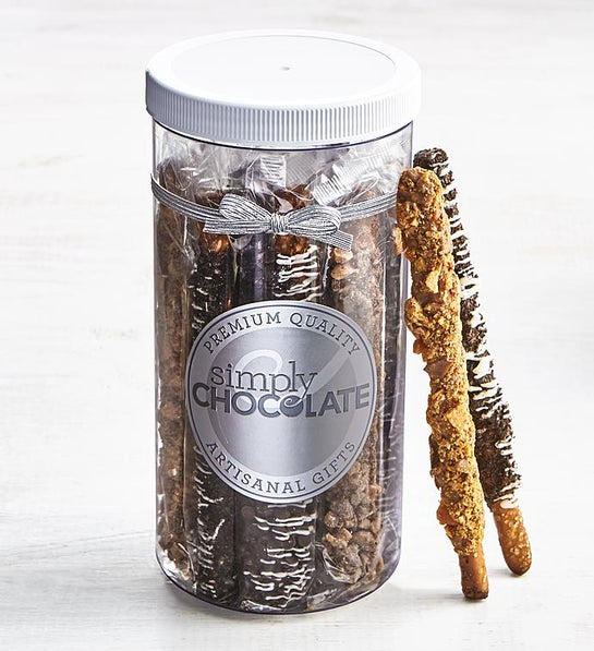About Simply Chocolate® Decadent Dipped Pretzels in Jar